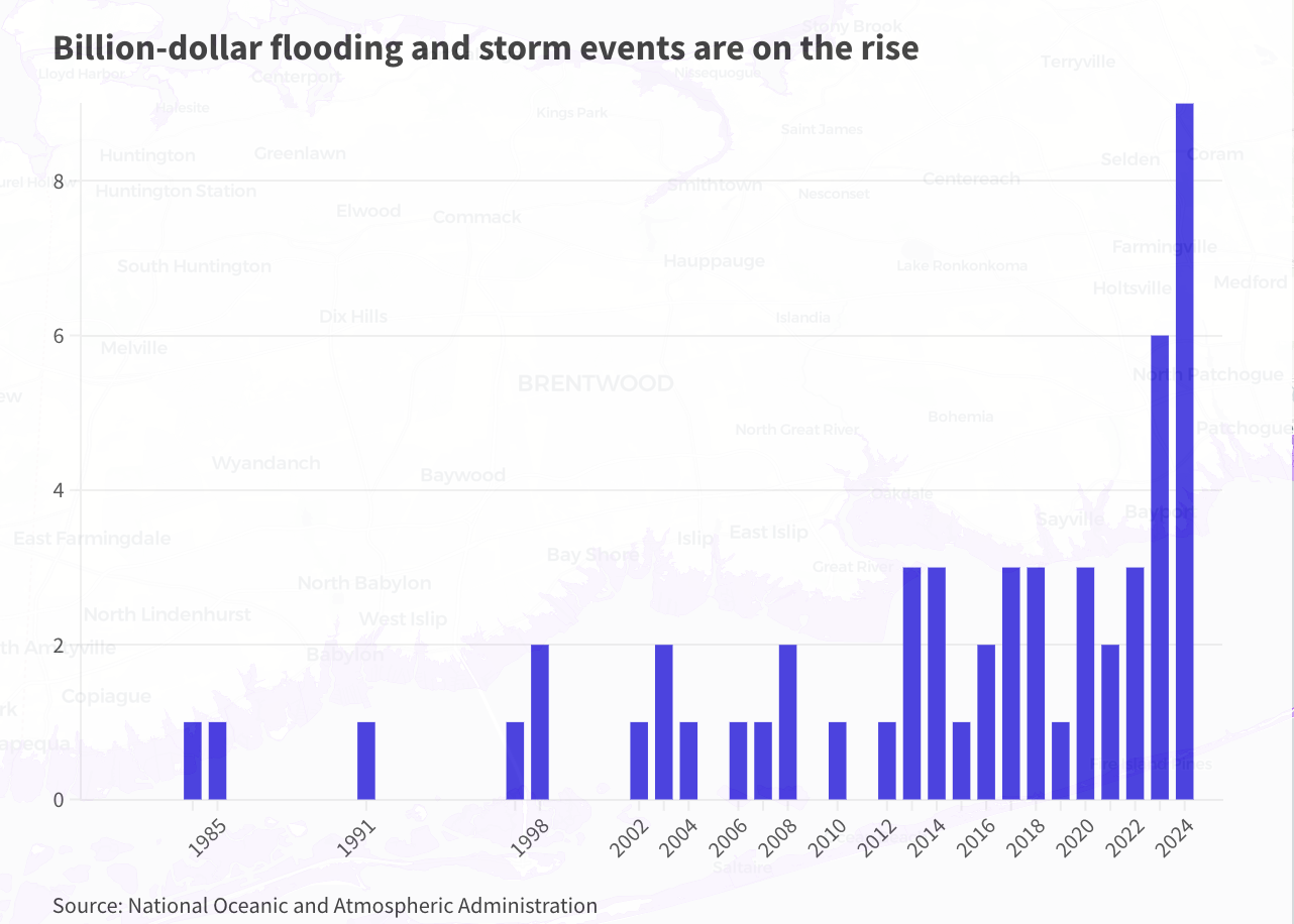 Led the data analysis and graphics package for nextLI’s Saving our Shores series, building a scrolly that locates the neighborhoods expected to be worst hit by rising sea levels.